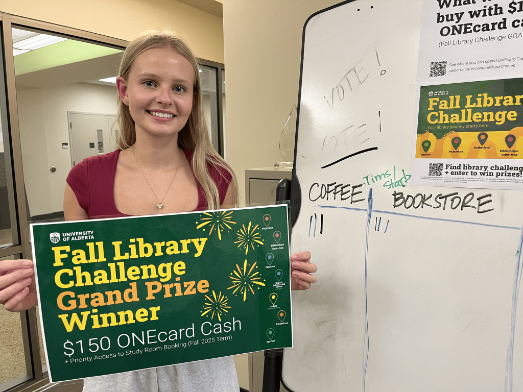 • Gagnante du grand prix – 150 $ en argent ONEcard + accès prioritaire à la réservation de salles d’étude pour l’automne 2025 : Danica !